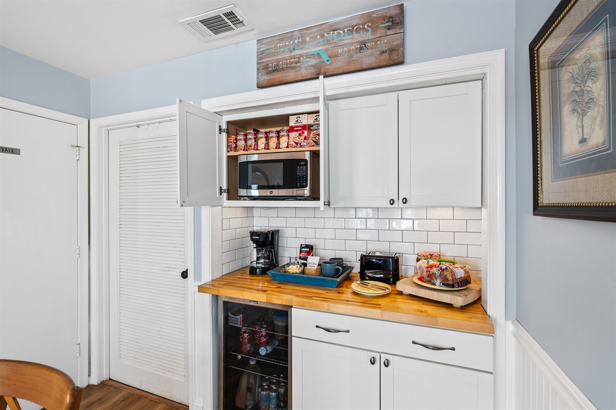 ☕ Indoor coffee & bar area for mornings or cocktails